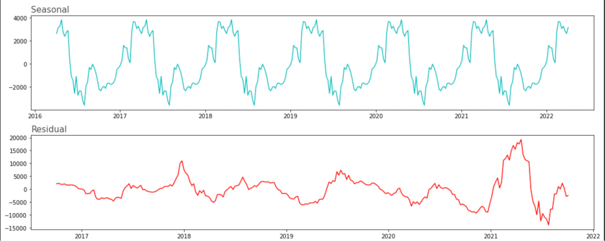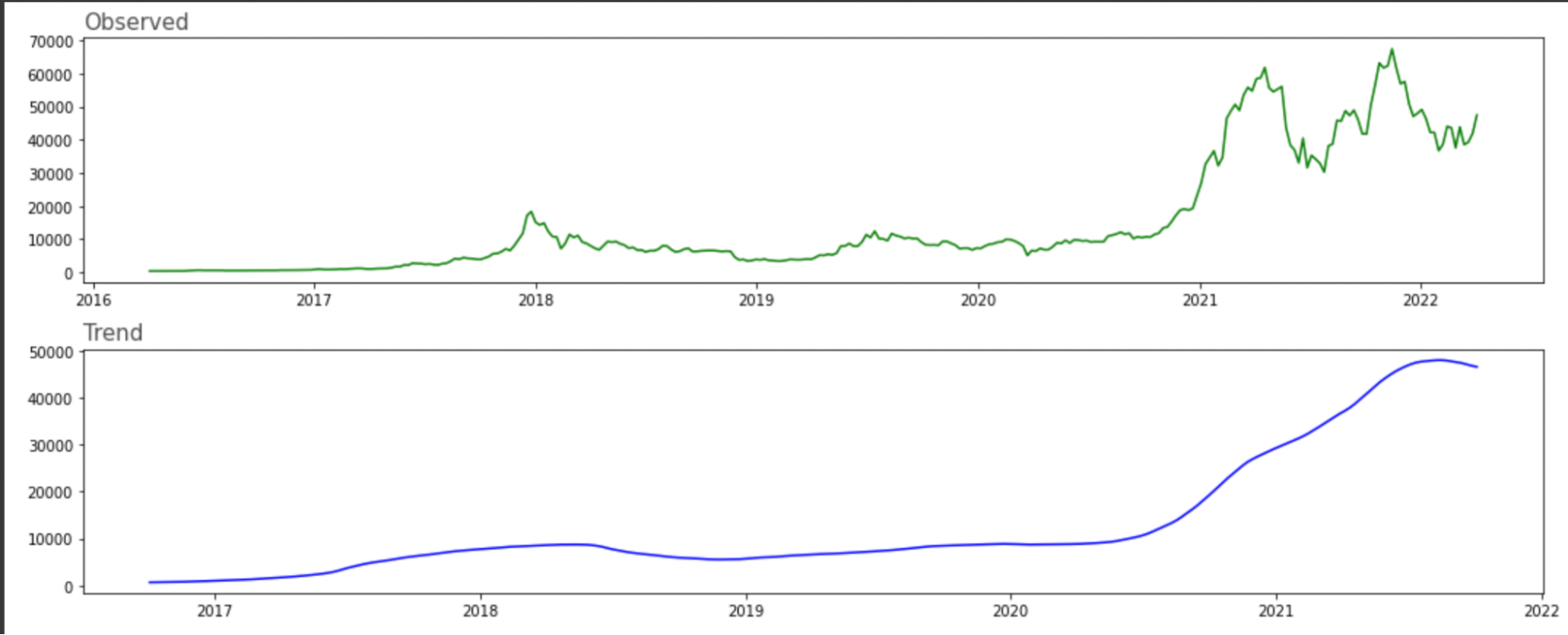 An essential part before running the model and obtaining loss values was to graph out seasonality graphs. To get a better understanding of our possible predictions, the statsmodel library was used to find the Observed, Trend, Seasonal and Residual graphs for our dataset. Though the data correlated to actual trends as observed in real life from 2016 to 2022, the seasonal graph was very closely compressed since our dataset was too large as it grouped daily price updates.